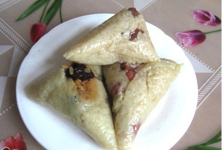 做法:將糯米泡一夜,然后把花生米、豇豆泡6小時(shí)以上,五花肉切塊加醬油、姜、料酒、糖和鹽漿一夜。把粽葉泡軟,取一片粽 葉折出一個(gè)三角,放一勺米,再放豆、花生米、肉和棗,最后再放一勺米。用手壓實(shí)米,把粽葉從上往下折疊,疊成三角形,用 棉線綁結(jié)實(shí)。在高壓鍋放進(jìn)沒(méi)過(guò)粽子的水,上面壓一個(gè)盛水的盆,蓋好鍋蓋,扣限壓閥燒開一個(gè)半小時(shí)即可。