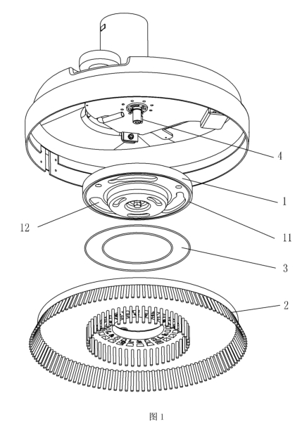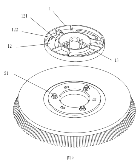旭潔洗地機(jī)刷盤(pán)的安裝方法是:使用刷盤(pán)升降踏板升起刷盤(pán)座,將刷盤(pán)放到刷盤(pán)座中央,向上貼合刷盤(pán)座,向左旋轉(zhuǎn),待刷盤(pán)裝好,啟動(dòng)刷盤(pán)開(kāi)關(guān),刷盤(pán)轉(zhuǎn)動(dòng),完成裝刷操作。目前市場(chǎng)上所有洗地機(jī)品牌基本都是通過(guò)類(lèi)似的電機(jī)導(dǎo)向?qū)崿F(xiàn)刷盤(pán)固定座與刷盤(pán)的自動(dòng)對(duì)位,在對(duì)位的過(guò)程中,刷盤(pán)固定座與刷盤(pán)的安裝端面剛性碰撞,會(huì)產(chǎn)生強(qiáng)烈的碰撞對(duì)位噪音,影響操作者使用舒適性。為了提高用戶(hù)體驗(yàn),旭潔新型洗地機(jī)進(jìn)行了研發(fā)和改善。